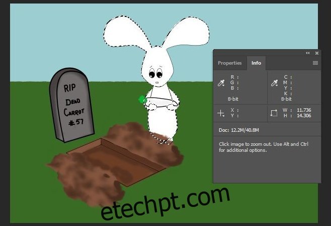 Para determinar as dimensões de um elemento específico, é crucial selecioná-lo isoladamente, sem selecionar outros elementos da mesma camada. Essa seleção individual pode ser um pouco complexa. Para simplificar o processo, sugerimos utilizar a ferramenta “Varinha Mágica”.