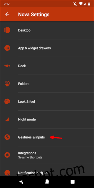 Pode adicionar um gesto à tela inicial abrindo novamente as definições do Nova Launcher. Em seguida, selecione “Gestos e entradas” para ajustar as configurações de gestos, e utilize o botão “home” para voltar ao launcher e experimentar as novas funcionalidades.