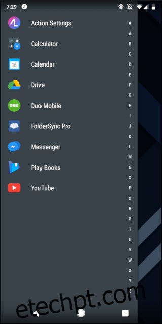 O Action Launcher também é muito popular. Ele oferece os recursos mais notáveis do Pixel Launcher do Google em qualquer dispositivo Android, incluindo aqueles que estão presos em versões mais antigas do sistema operativo. Oferece suporte total para pacotes de ícones, assim como a capacidade de redimensionar os ícones automaticamente para torná-los mais uniformes. Um dos seus recursos mais singulares são as persianas: deslize o ícone de uma aplicação para cima para ver o seu widget (se disponível). Também oferece o famoso Quickdrawer do Action Launcher, que permite deslizar a partir do lado esquerdo do ecrã para ver todas as aplicações, em vez de ter de deslizar para cima ou pressionar um botão na tela inicial.