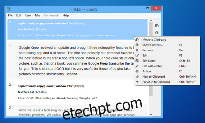 O CopyQ é um aplicativo de código aberto compatível com Windows XP, Windows Vista, Windows 7 e Windows 8.